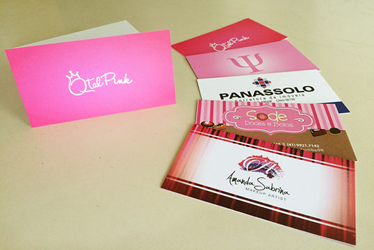 Cartão de visita com laminação e verniz localizado.